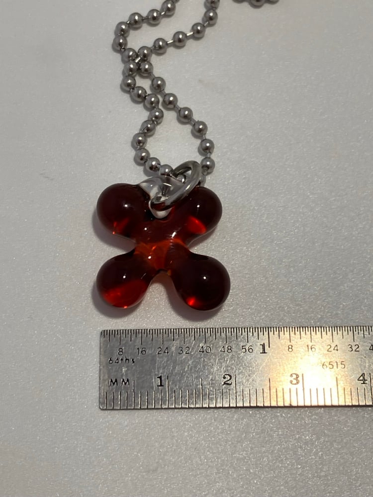 amber borosilicate glass clover pendant. comes with stainless steel jump ring and 24" ball chain (can be trimmed shorter)