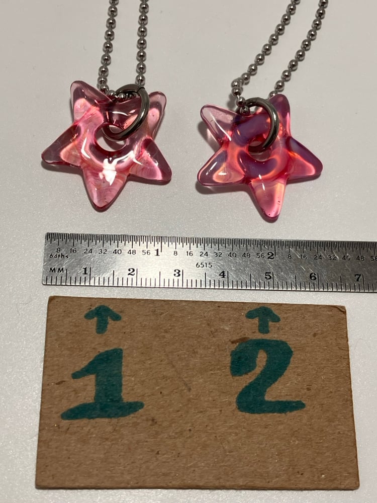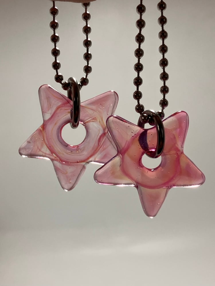 ruby over other colors borosilicate glass star pendant. comes with stainless steel jump ring and 24" ball chain (can be trimmed shorter)