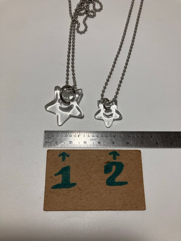 clear borosilicate glass star pendant. comes with stainless steel jump ring and 24" ball chain (can be trimmed shorter)