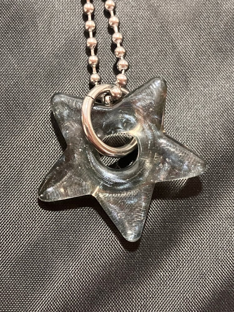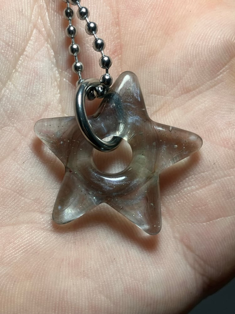 mixed color borosilicate glass star pendant. comes with stainless steel jump ring and 24" ball chain (can be trimmed shorter)