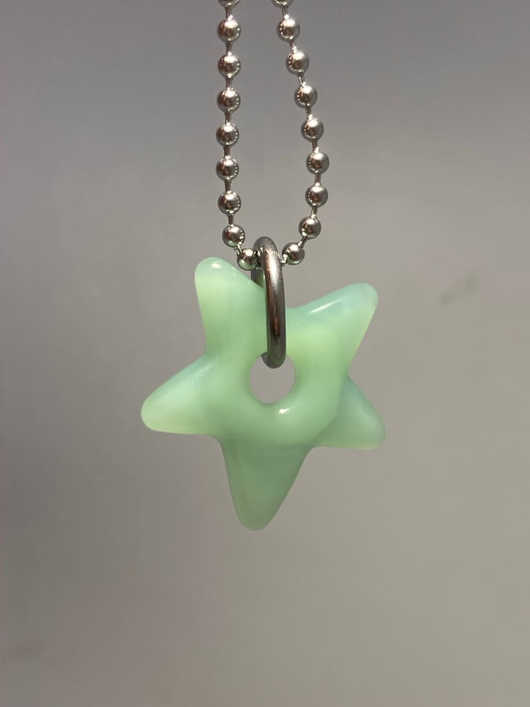 opaque mint green borosilicate glass star pendant. comes with stainless steel jump ring and 24" ball chain (can be trimmed shorter)
