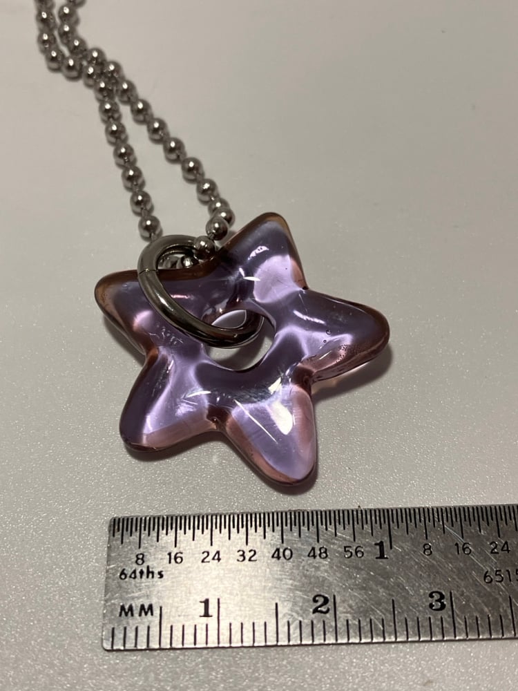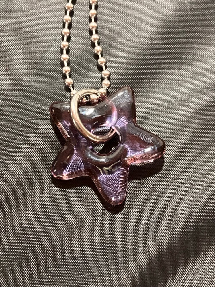 translucent purple with brown outline borosilicate glass star pendant. comes with stainless steel jump ring and 24" ball chain (can be trimmed shorter)